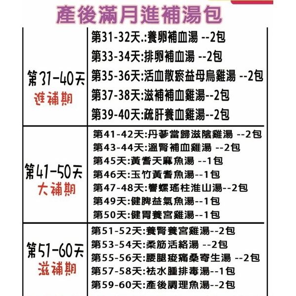 《各位產後坐月中媽媽期待已久,最新推出》 媽寶工房@產後滿月進補調理30包湯包 (產後第31-60天) 進補期:第31-40天 大補期:第41-50天 滋補期:第51-60天 😄「剛生完BB都是休養期,想陪月姨姨離開後繼續進補補身,可以點算呢?」 😄「開刀生BB,坐月時不可以補身,想第二個月補返!」 😄「坐月沒有做好,滿月後可以再進補? 😄「坐月完腰酸骨痛,想產後第二個月繼續補身?」 😄 一句講哂「坐月完想繼續進補調理」 👍🏻👍🏻👍🏻👍🏻👍🏻👍🏻👍🏻👍🏻👍🏻👍🏻👍🏻👍🏻 產後滿月進補湯包 1)第31-60天(30包)進補湯包 產品查詢/預訂電話☎️:97717456/97766589 中藥材零售商業牌照 CR-2019-00455